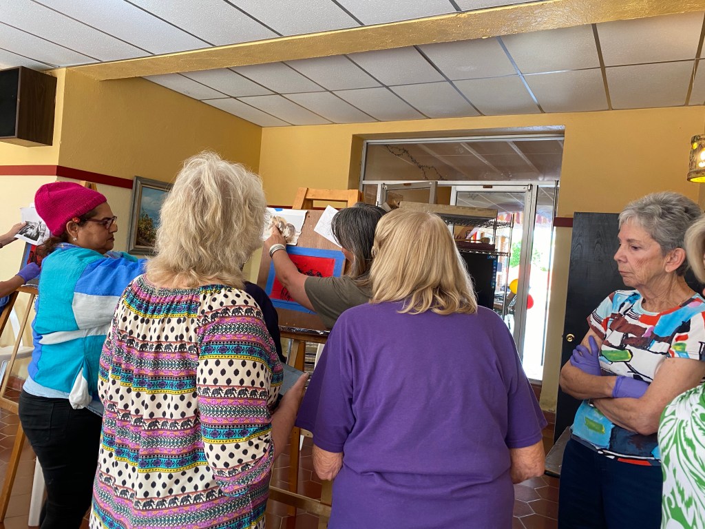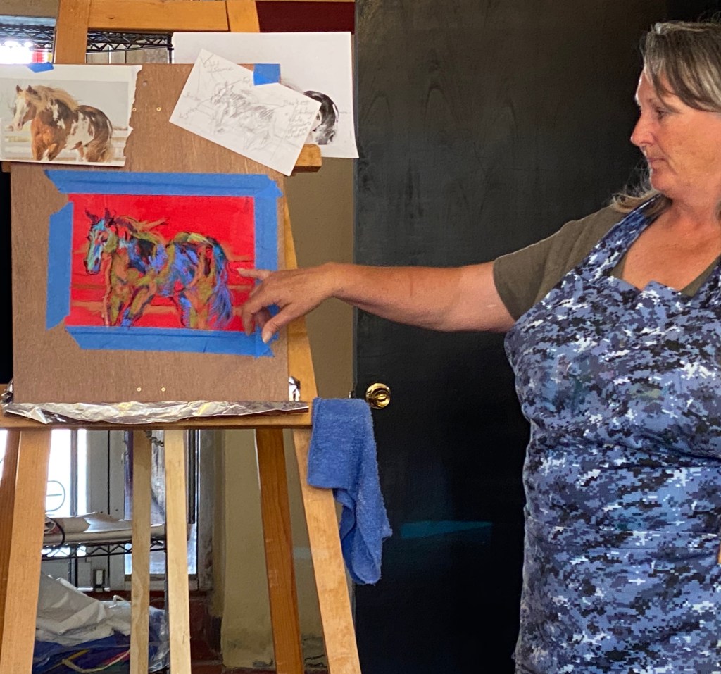 Kimmer (with an assist from Claudia) lead an interactive pastel workshop. We all together did one (actually 2) painting together as a group. How fun does that sound!!