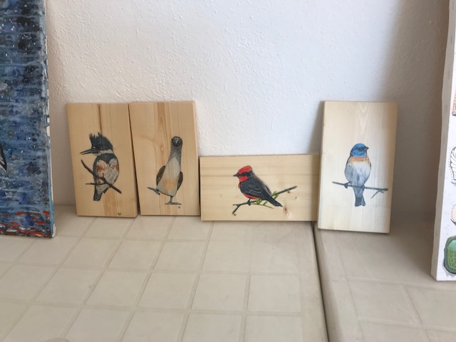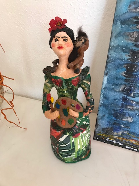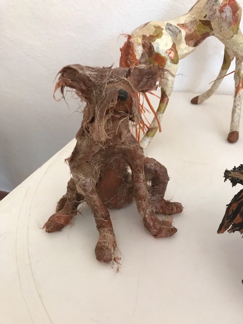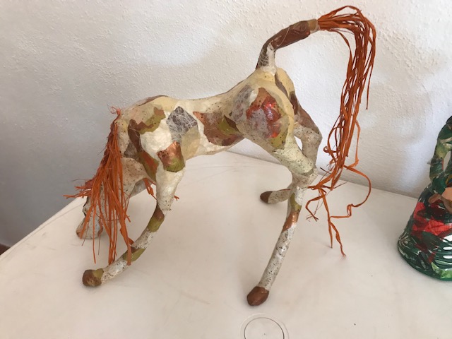A sampling of Elaine’s new Passion of Papier Mache. The tall blank armature will be a horse.