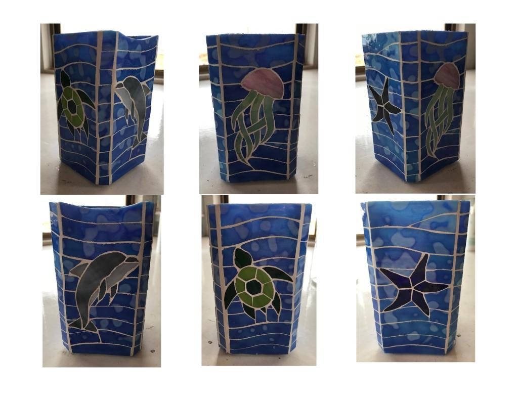 Lisa’s Sea Life Mosaic on a four-sided glass vase