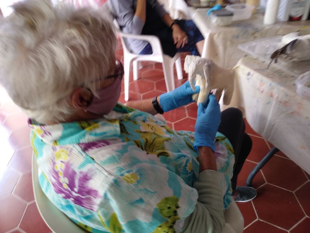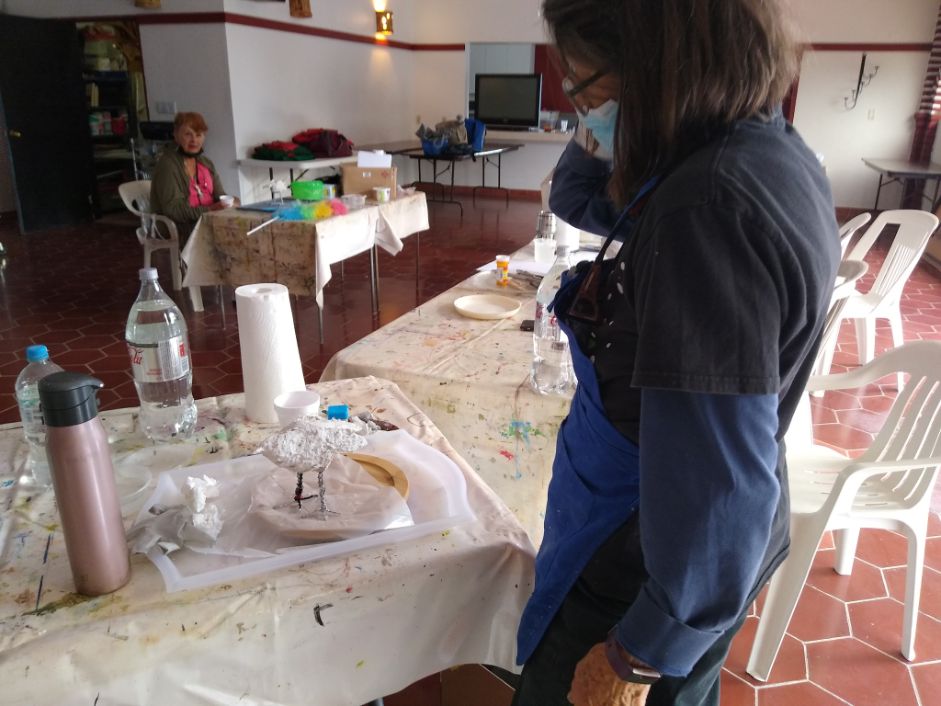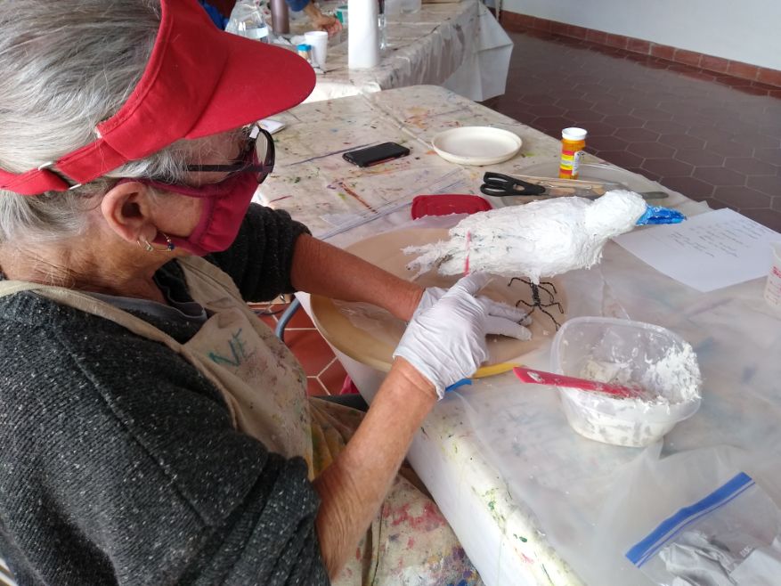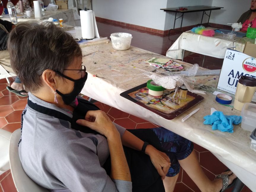 A selection of some of Elaine’s worksBrenda added feathers to her Bird!Brenda decided to try an Elephant! Can’t wait to see it finished.Colleen working on her birdKathy’s Bird in progressLynne’s Flamingo or Heron? Lookin good!Bird that Elaine was showing the group how to applyTerri’s Bird in ProgressLibby working on her Bird