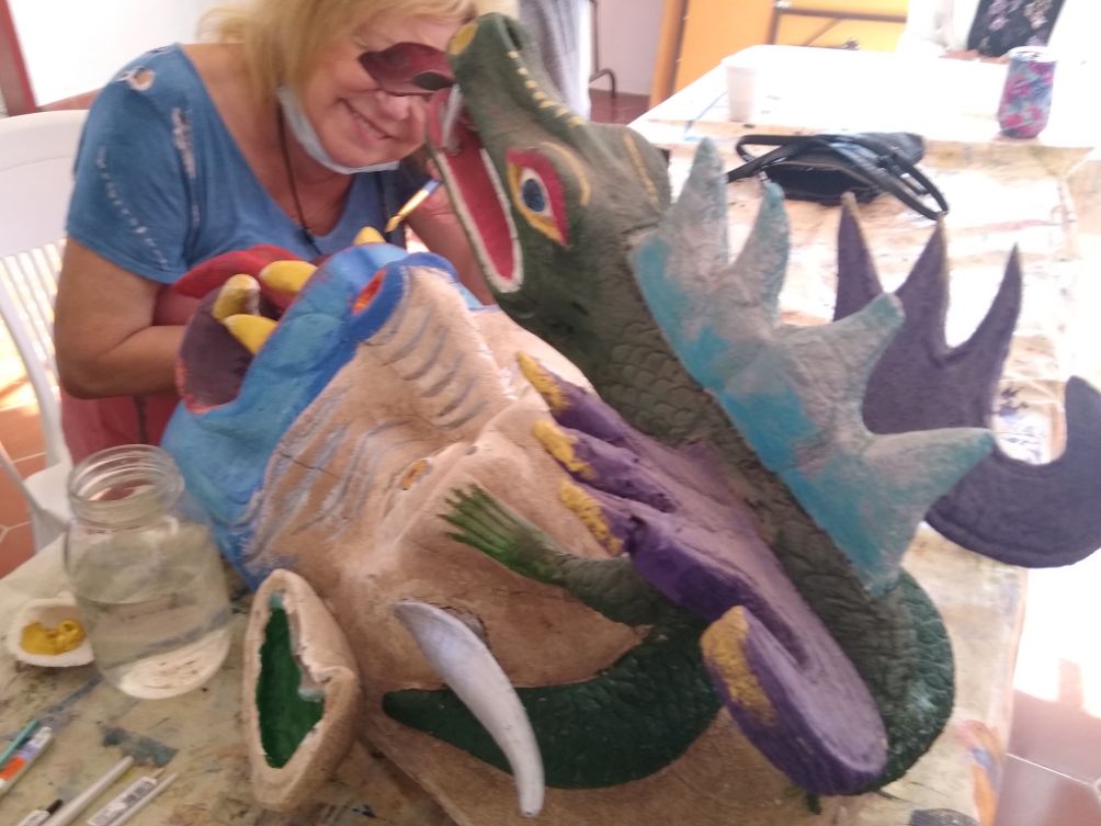 Today we had open studio and some worked on their next steps of papier mache and some brought other projects to work on. Kimmer showed us a recently completed commission that she can’t show at Tecalai because it is a Mermaid in all her glory up top. She is beautiful and it’s too bad she can’t be at the show with us, but nudes aren’t allowed…