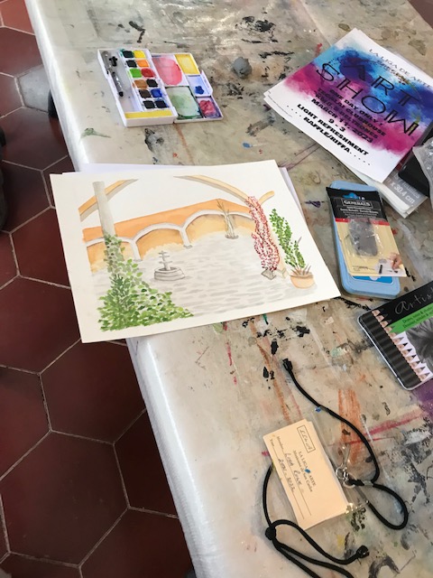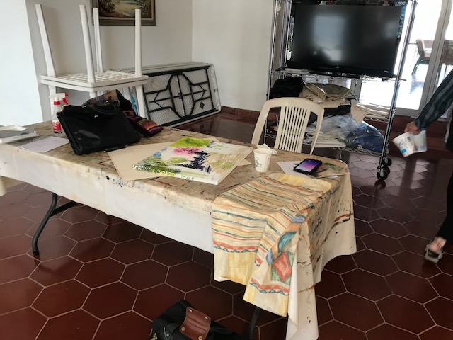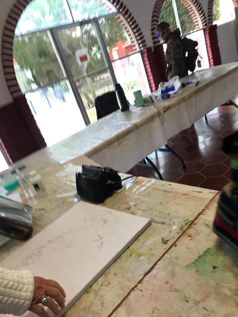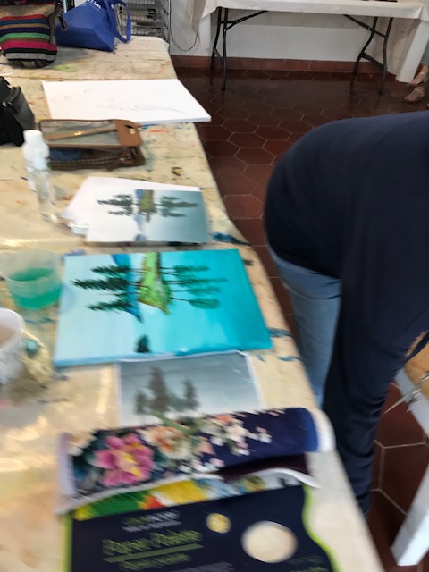 A few of our works in progress. The mosaic dolphin by Lisa is one of the Seguro y Sana dolphins for sale at local venues to raise funds for their shelter project.