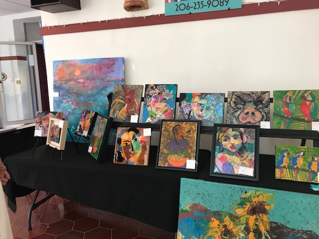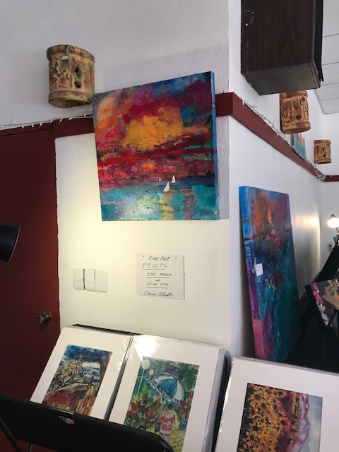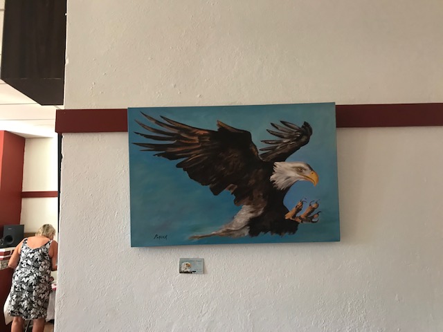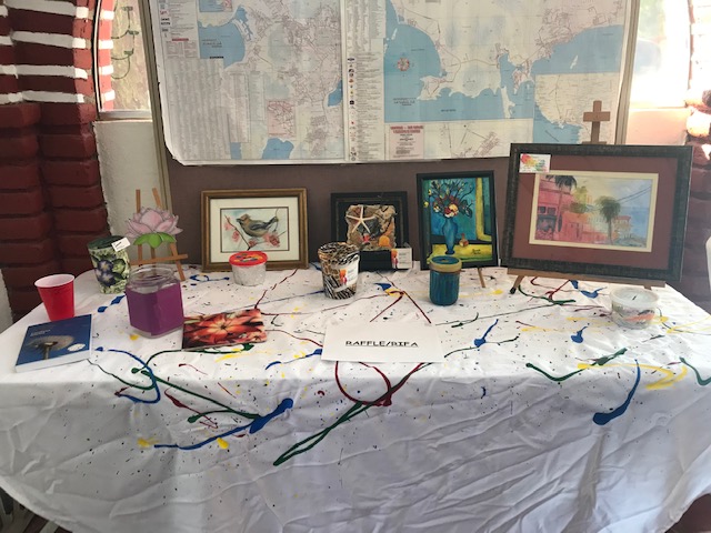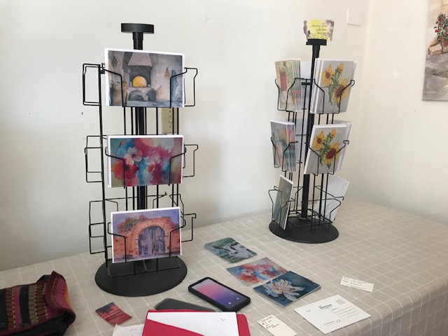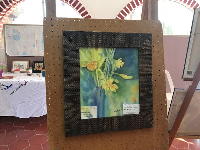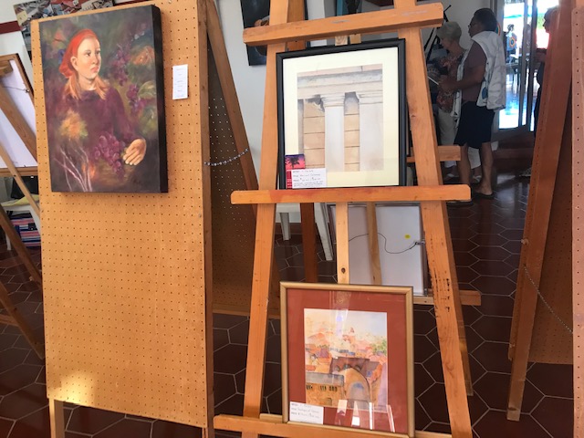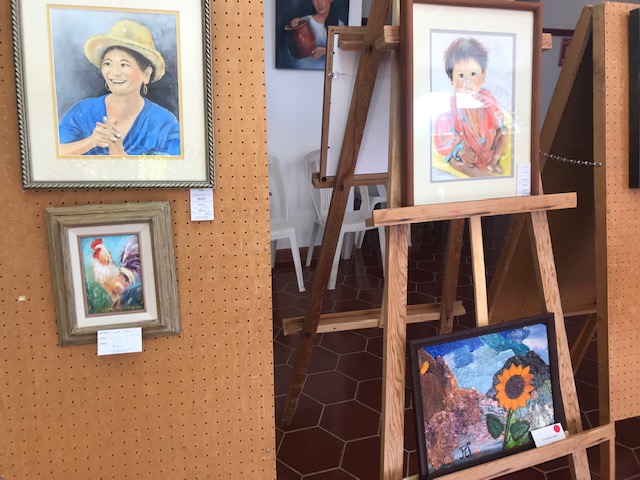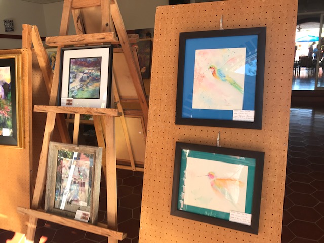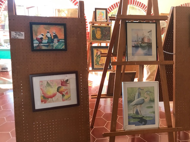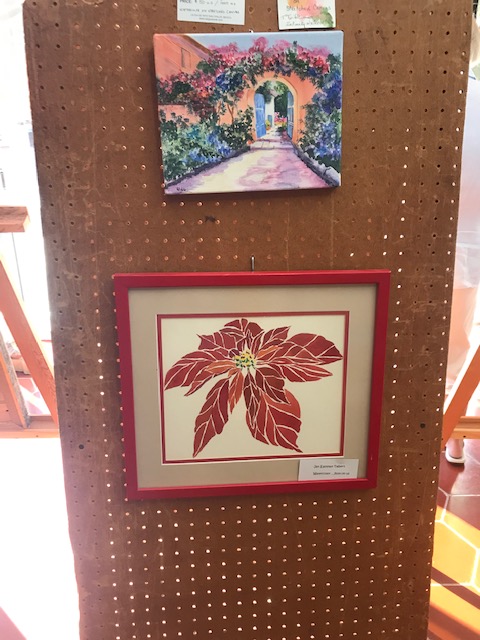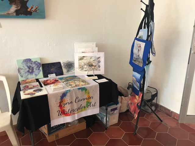 Today we held the last Art Show of the season for our group. We had a really great selection of art work for our guests to view and buy if they so chose. We had a brisk morning of visitors, with a lunchtime lull, and then a few more visitors after lunch. We had a nice refreshments table for the artists to graze on and for our guests to enjoy, as well as a number of raffle items available to be won. Here are some shots of our members’ works that were available today: