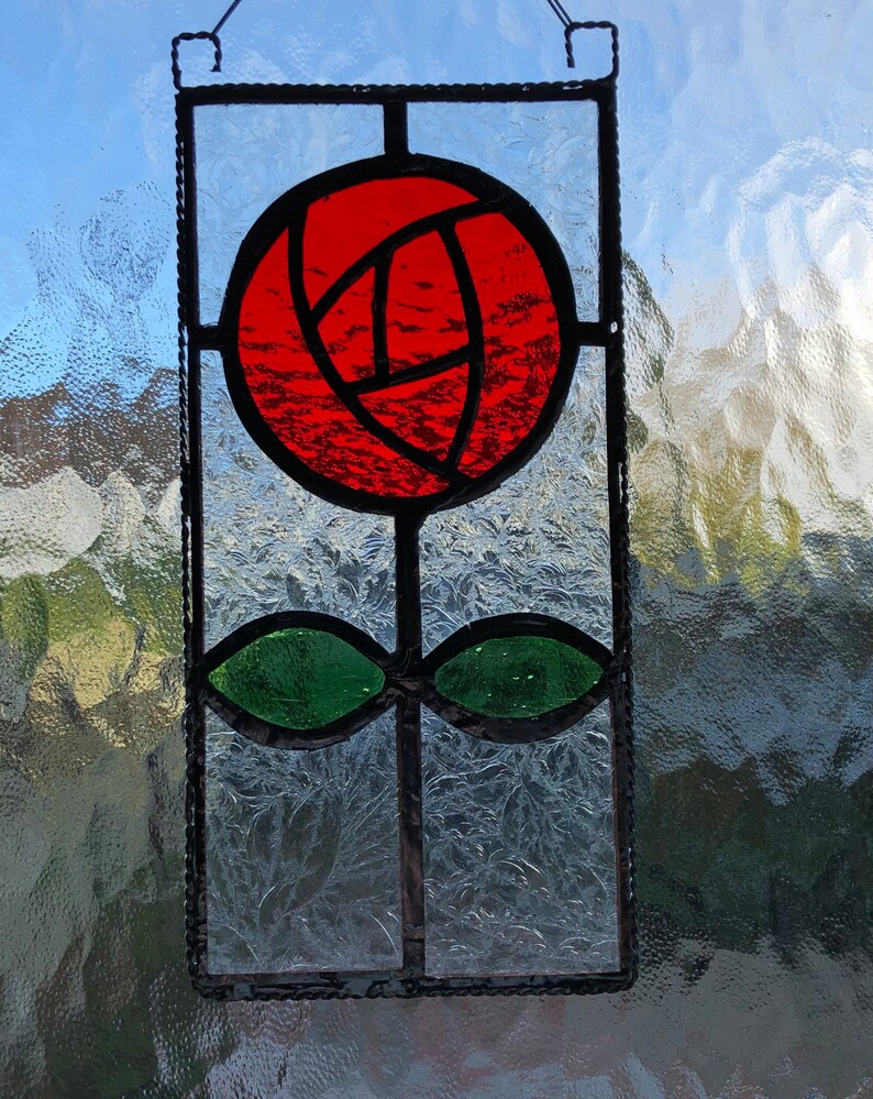 Lisa chose to do her representation of Charles Rennie Mackintosh a Scottish Architect and Artist. Her piece is on the left and a sample of the Mackintosh rose that she worked from is on the right.