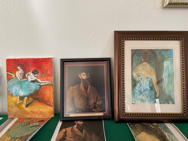 Brenda did not only one, but three paintings. The ballet dancers is her representation of a Degas painting. The centre photo is her self-portrait of Eduard Manet’s self-portrait, and the lady in blue (needing her corset tightened) is her take on a Manet painting. Great job Brenda!