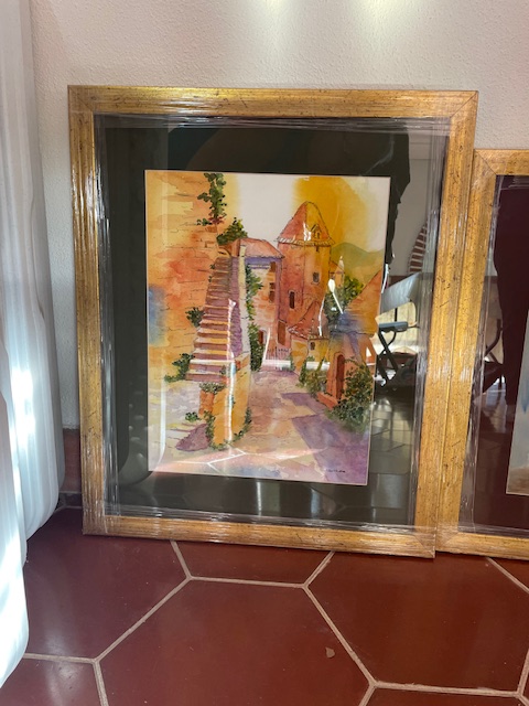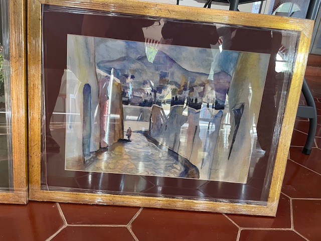 A couple of Terri’s recent watercolors. The left showing the circle of path of light, which is a technique learned from Karlyn Holman, a favourite mentor of Terri’s. Both great pieces! Sorry for the glare but this is a normal problem with photographs of watercolors under glass.