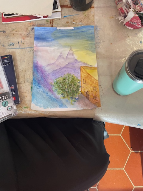 Today we were lead by our own Terri in a session about using watercolors and what she recommends you start with for brushes, paper and paints, as well as techniques. While not all of us are watercolor people we all had fun!