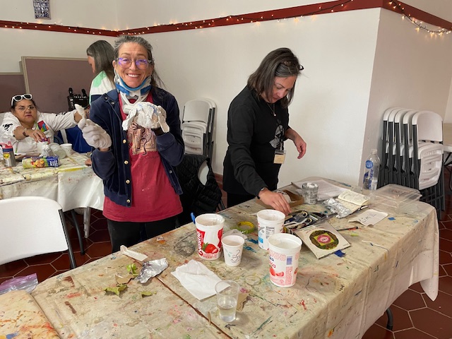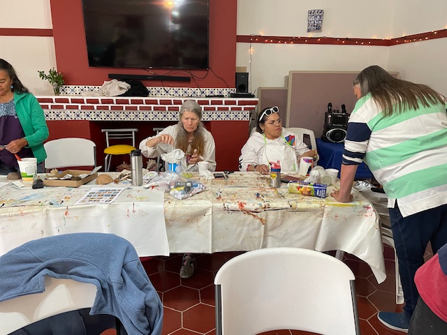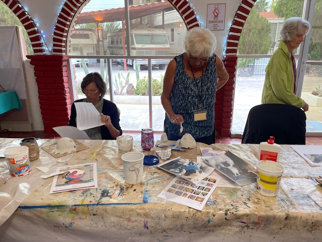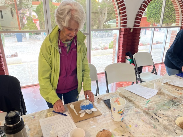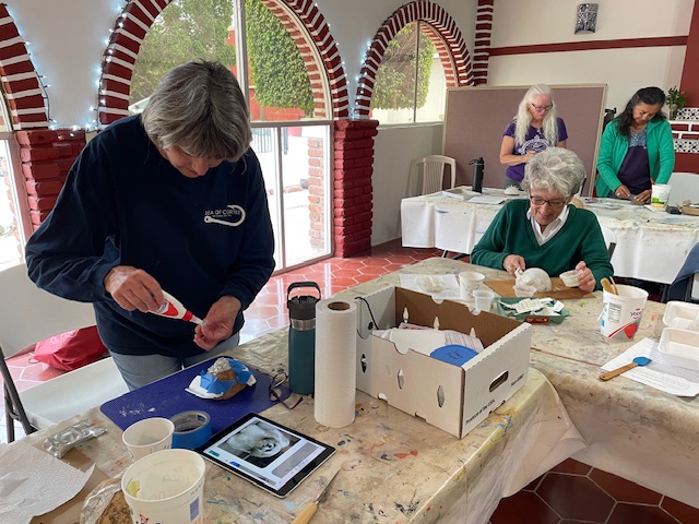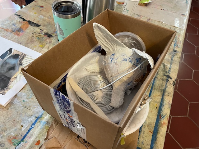 Then Mary Hunchberger gave us a class in doing Papier Mache using a half coconut shell as the base for our projects. Many of us chose to do their pet as the subject, although there was at least one fish and a couple other subjects out there!