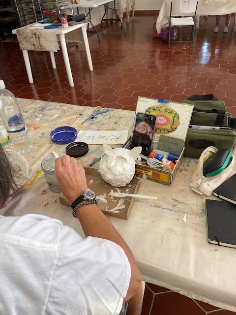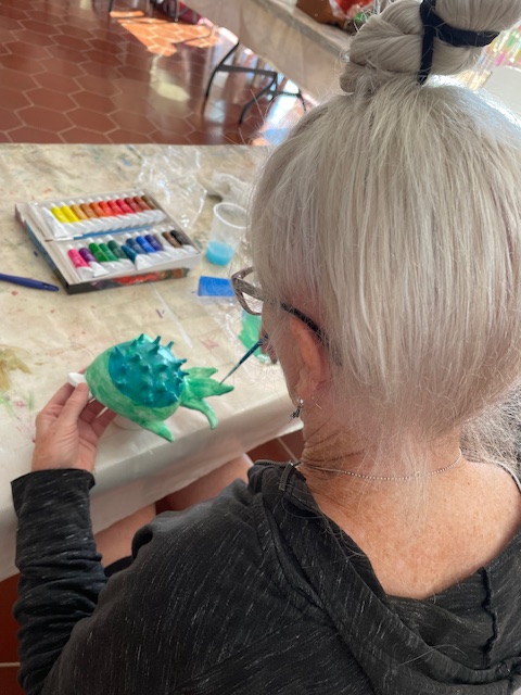 Brenda and her puffer fish and Jackie with her elephant in progress! Great work!