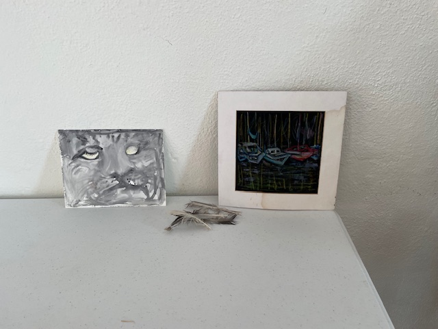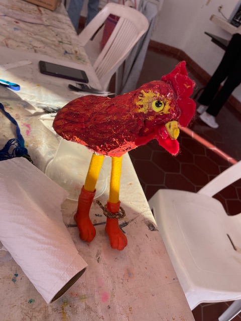 Olivia’s rooster is taking shape! Today she glued some feathers on for the tail! Also some of her other works that she’s recently completed.