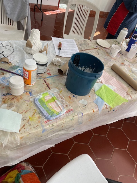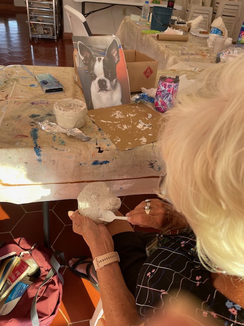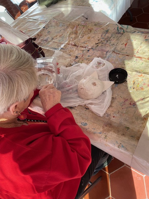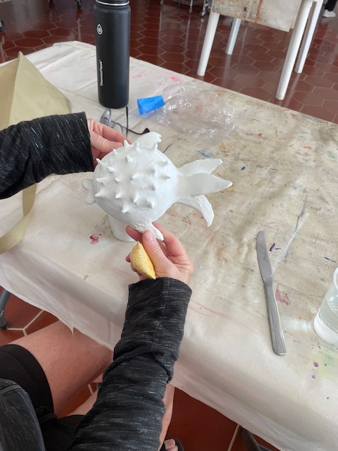 Brenda and her puffer fish and Jackie with her elephant in progress! Great work!