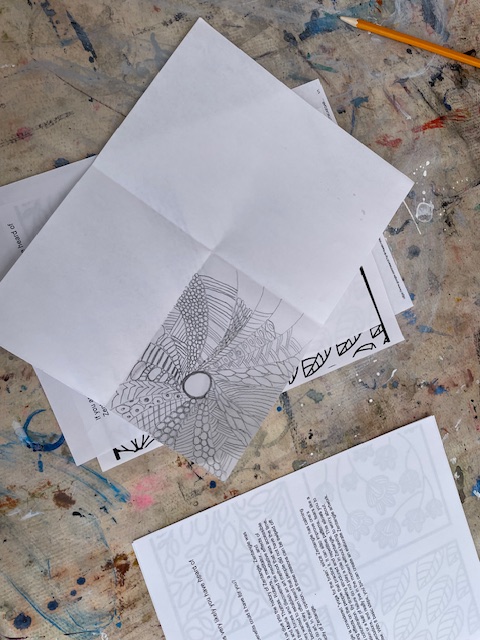 Lynn working on her Fishie Zentangles, Lisa’s organic shaped project, and Brenda working on a Peacock. Guess what colour she adds later?!