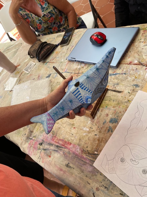 Kimmer also just finished another Seguro y Sana dolphin. Look at the cool fades, Zentangling and the underside is so cool! This will be a great addition to the fundraising for Seguro y Sana project!