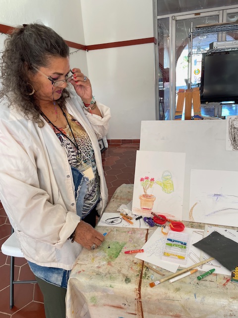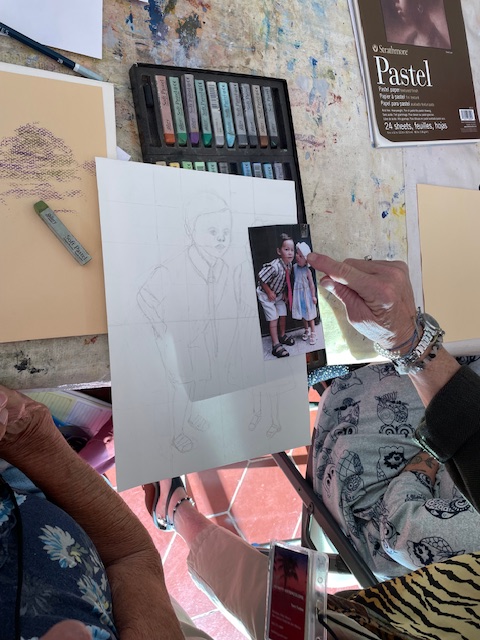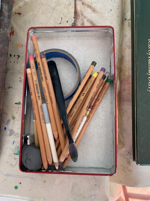 Brenda and Susan were using chalk pastels pictured above. Susan’s favourite is Faber-Castell brand, and we can attest to her skill with them!
