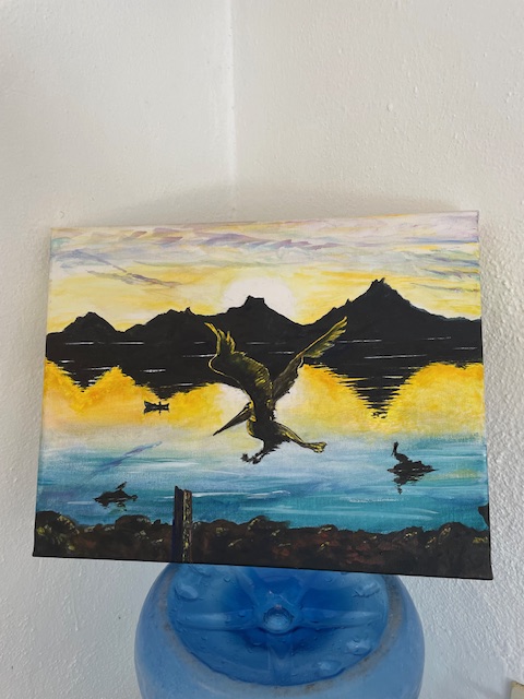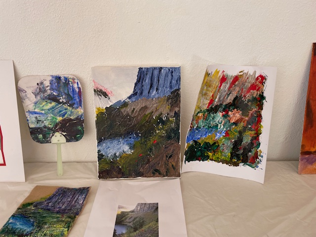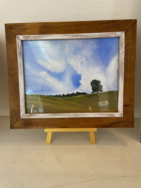 Doug brought two pieces in, the one on the left is an early piece of his and shows his skill for clouds! The on the right is all done with palette knife! Two very distinct and very nice pieces by the same person!