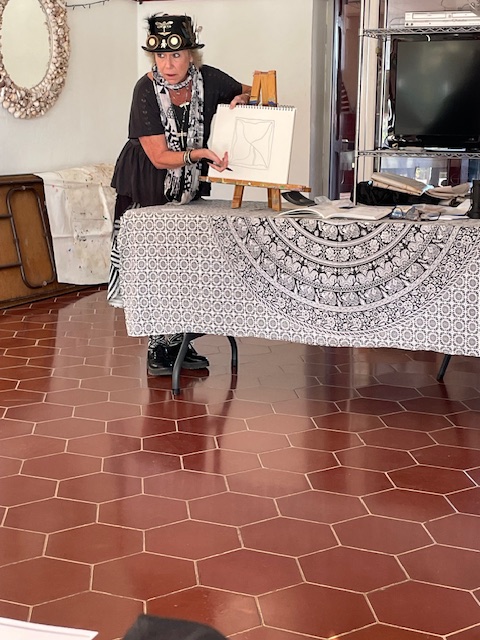 Today Vicki led us through the basics of completing a Zentangle Tile with four patterns. Some members had been in her class before and some hadn’t so there was quite a variety in what all of us knew about Zentangle. Vicki started off with a bit of education about the origins of the Art and some inspiration from her favourite book.
