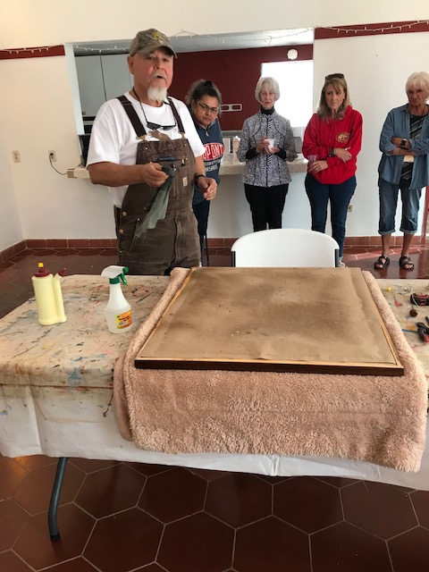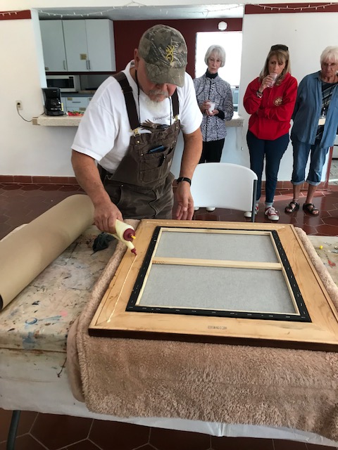 We had a show debrief today, a bit of open studio, and we also enjoyed a Demo by Ben on how to affix the dust cover on the back of a framed artwork. Below are photos of Ben showing us step-by-step how to do it.