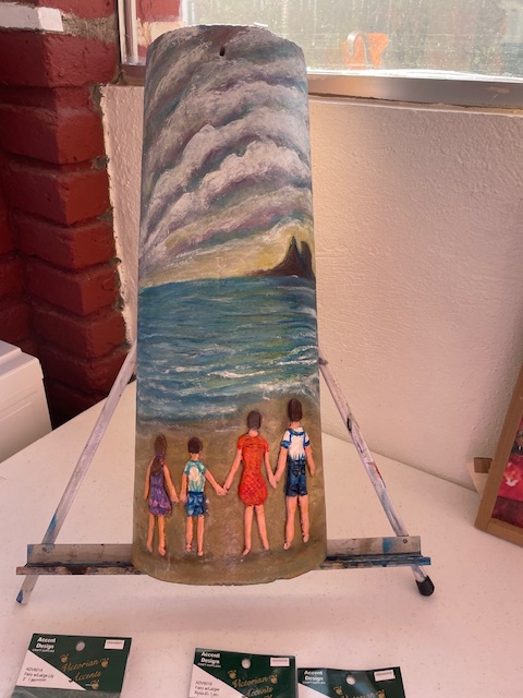 A portrait that Wayne did and a Clay Tile that Olivia did for a commission. Great work both of you!