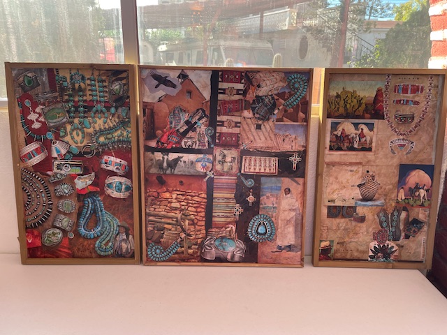 Today, Kimmer also brought in these three collage pieces on the right, and here’s a group shot of the Owl and Raven pictured above: