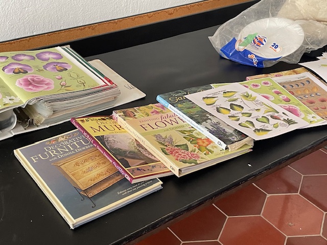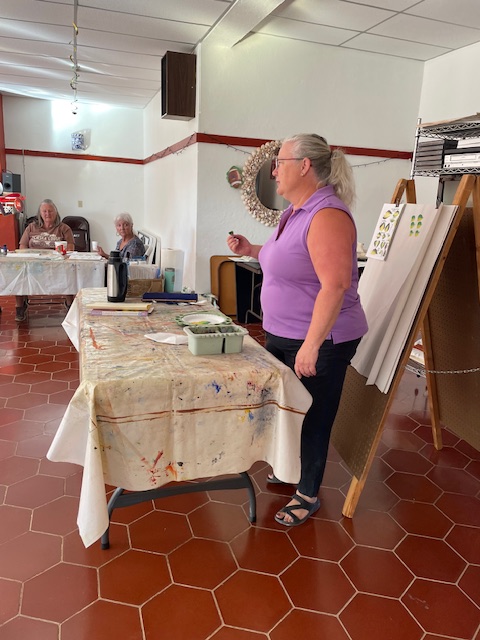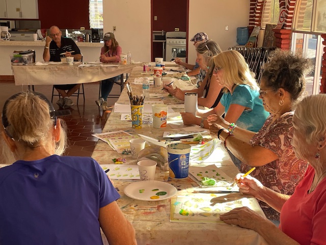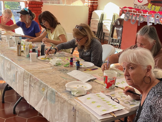 Lisa led us through a One Stroke painting session. Some that had participated in the class a couple years ago were not looking forward to it because they had trouble grasping the different way you move the brush when doing one stroke strokes. Happy to report that some of them “got it” this time and were much happier with their results.