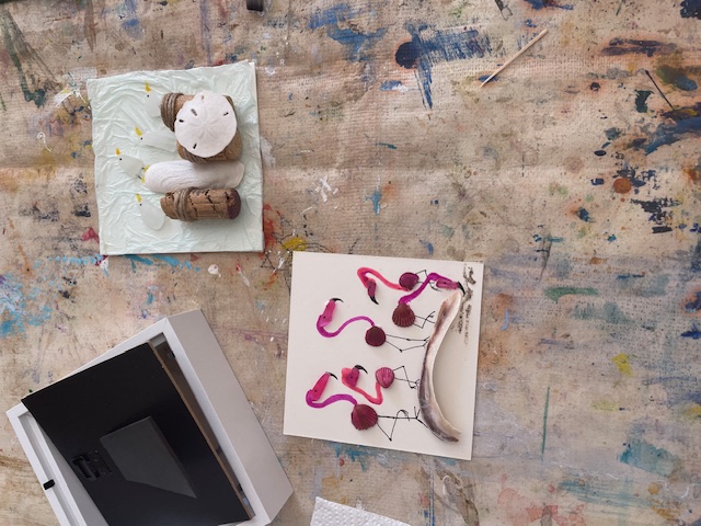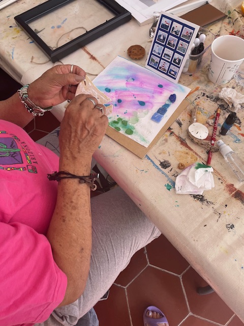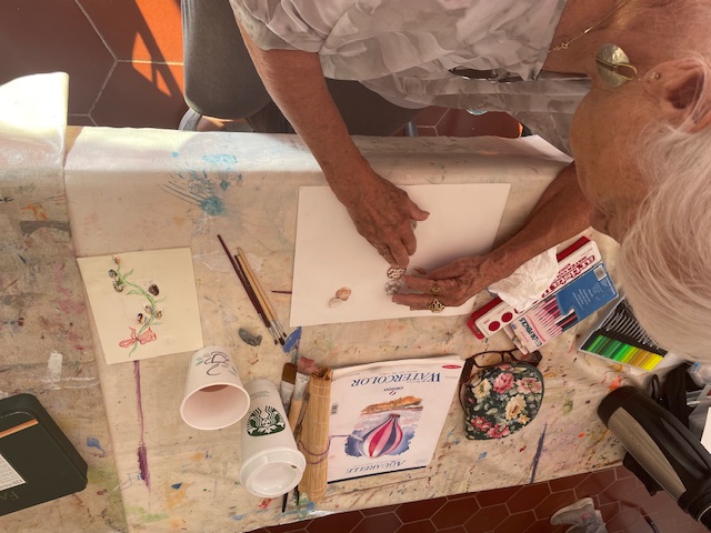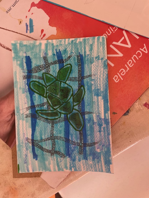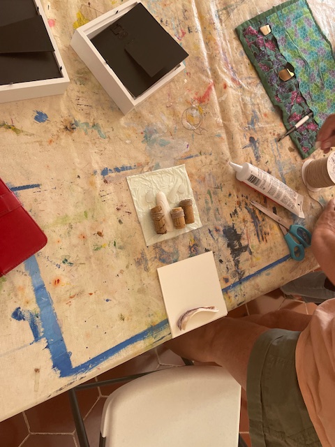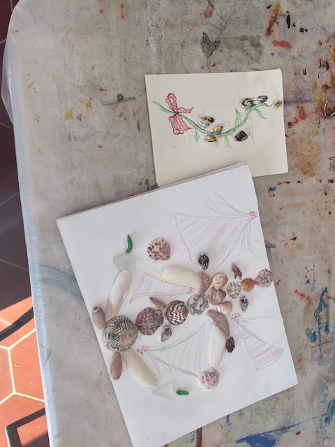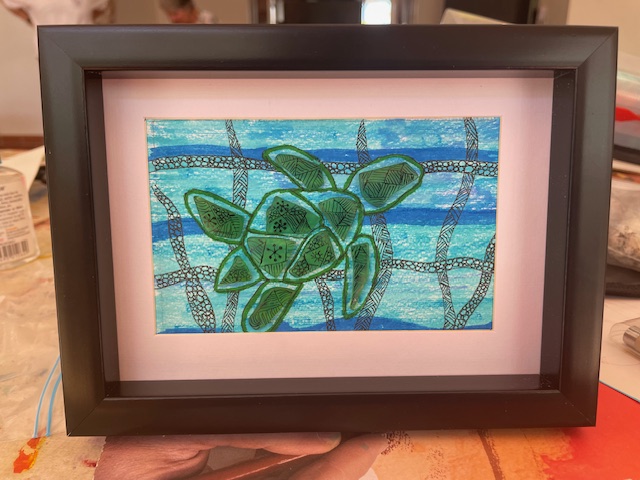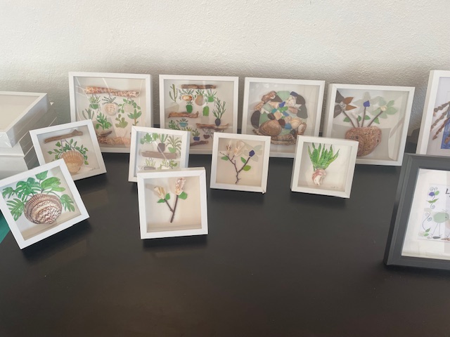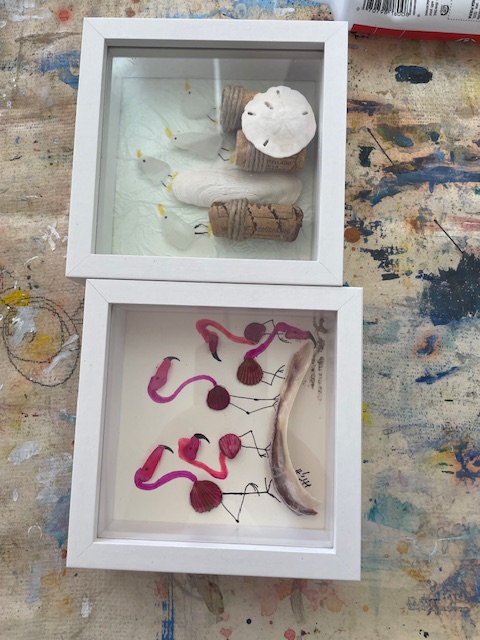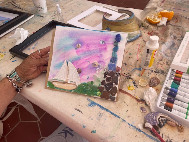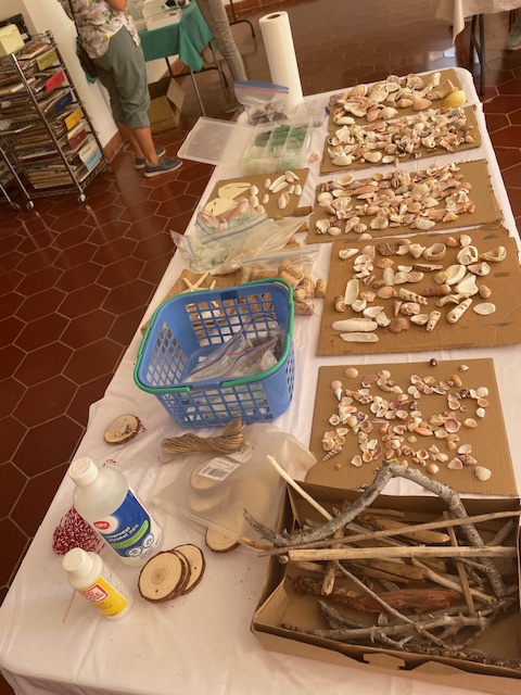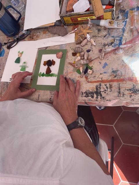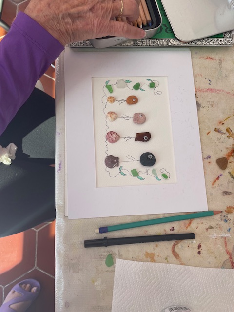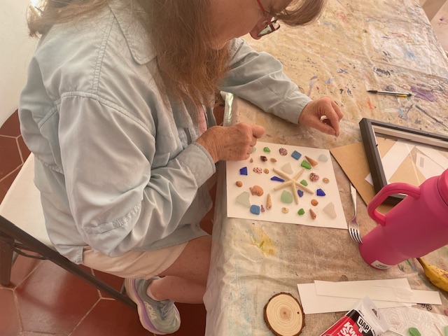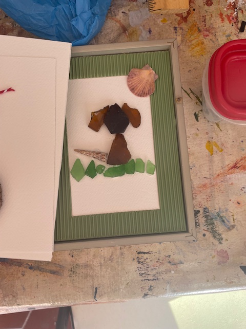 Today Cindy led us through doing sea glass shadow boxes including shells, corks, drawing and it was a lot of fun for those of us that participated.
