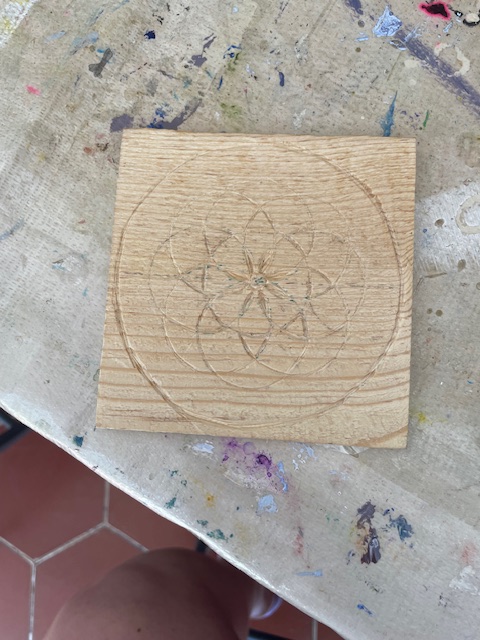We also had a visitor, Ariana, from the show come today to see what our Monday meetings are like, she’s been doing Mandala’s with wood carving, and this is one she’s been working on. Looking forward to seeing how she finishes it off, possibly with some woodburning or colour, she’s unsure yet. We’re looking forward to having her come to more meetings