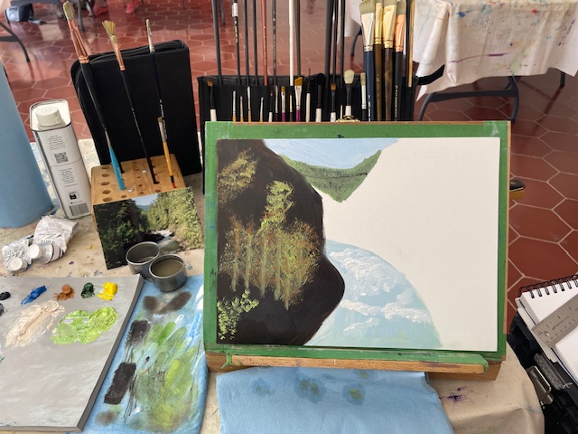 Doug started work on an oil painting today. Coming along nicely! Look forward to seeing the finished piece soon!