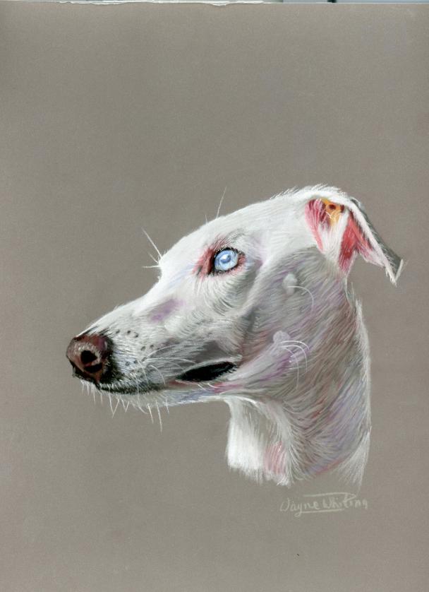 Wayne says he really likes the depth of color he is achieving with his new pastel pencils………….you be the judge of this stunning greyhound.