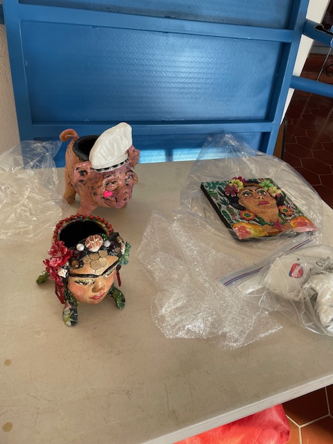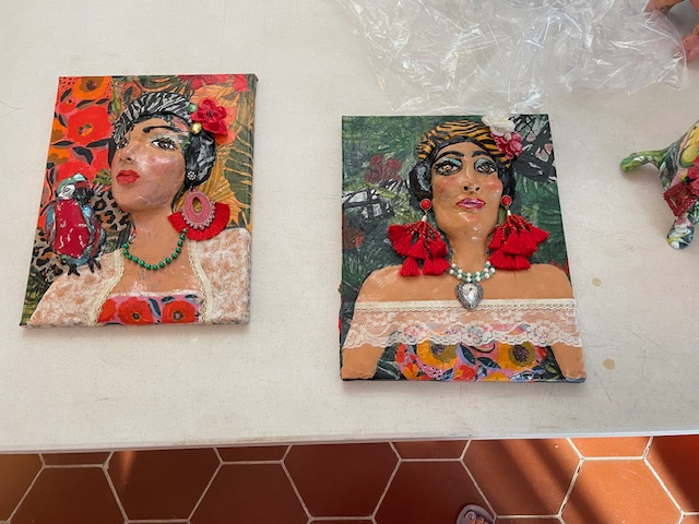 Elaine was busy over the summer! She said with her heart issues that she was having to find a way to be creative while sitting. Elaine has often made her pieces more three dimensional but this series she’s recently done used a new product called Foam Clay which is really very lightweight and doesn’t crack like some of the homemade air dry clay products do.