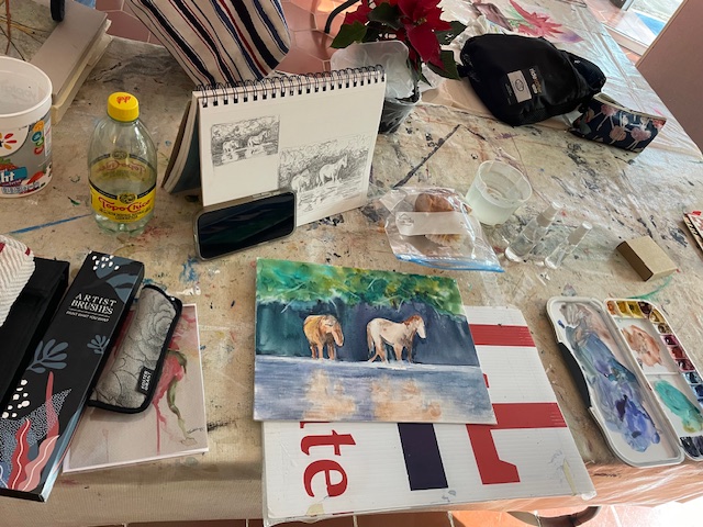 We watched a Youtube video by one of Terri’s favourite artists: Karlyn Holman, who passed away a few years ago: “How to prepare your canvass for Watercolor” https://www.youtube.com/watch?v=-sBxZRGF1tg.