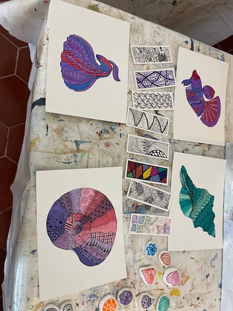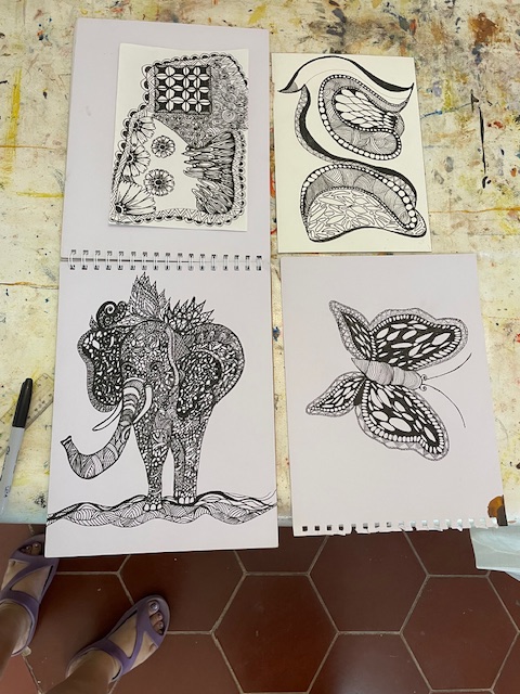 Brenda brought a few of her Zentangle pieces and also her Frida homework which she’d Zentangled as well. Look at that Elephant, it is Awesome!