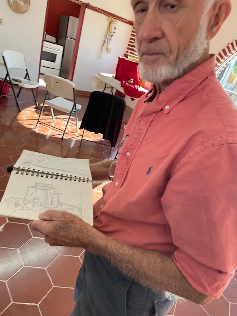 Today Doug set up three stations for us to sit at and draw. We had 30 minutes per station and then move on to the next station. It definitely reminds us that we all need to practice and get outside of our comfort zones! He suggested that those of us that are very detailed and tight to try to be loose and those that paint/draw in a loose fashion try more details!
