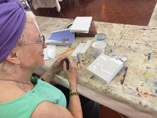 We can’t believe that Josanna was going to paint over this to use for the relief class today, but we stopped her! And actually Jan took it home with her and has the perfect place on her wall for it!