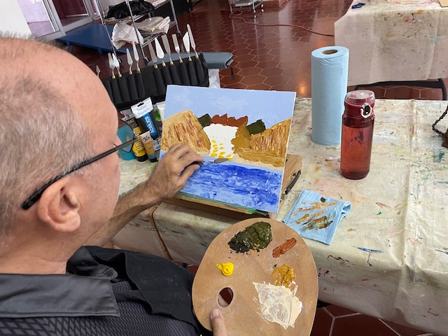 We really look forward to seeing how they look next week! Make sure to bring your pieces in for us to see! Above Doug was being a rebel using his palette knife!