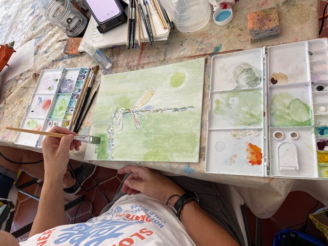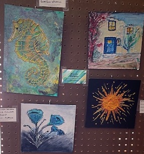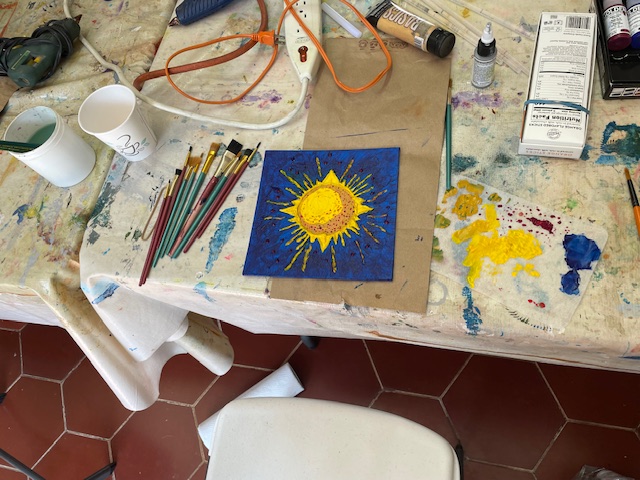 I missed getting a photo of what Brenda and Olivia were working on so I pulled up some of Brenda’s glue gun work that she had in the recent show. And my (Lisa’s) dragonfly is coming along-ish…